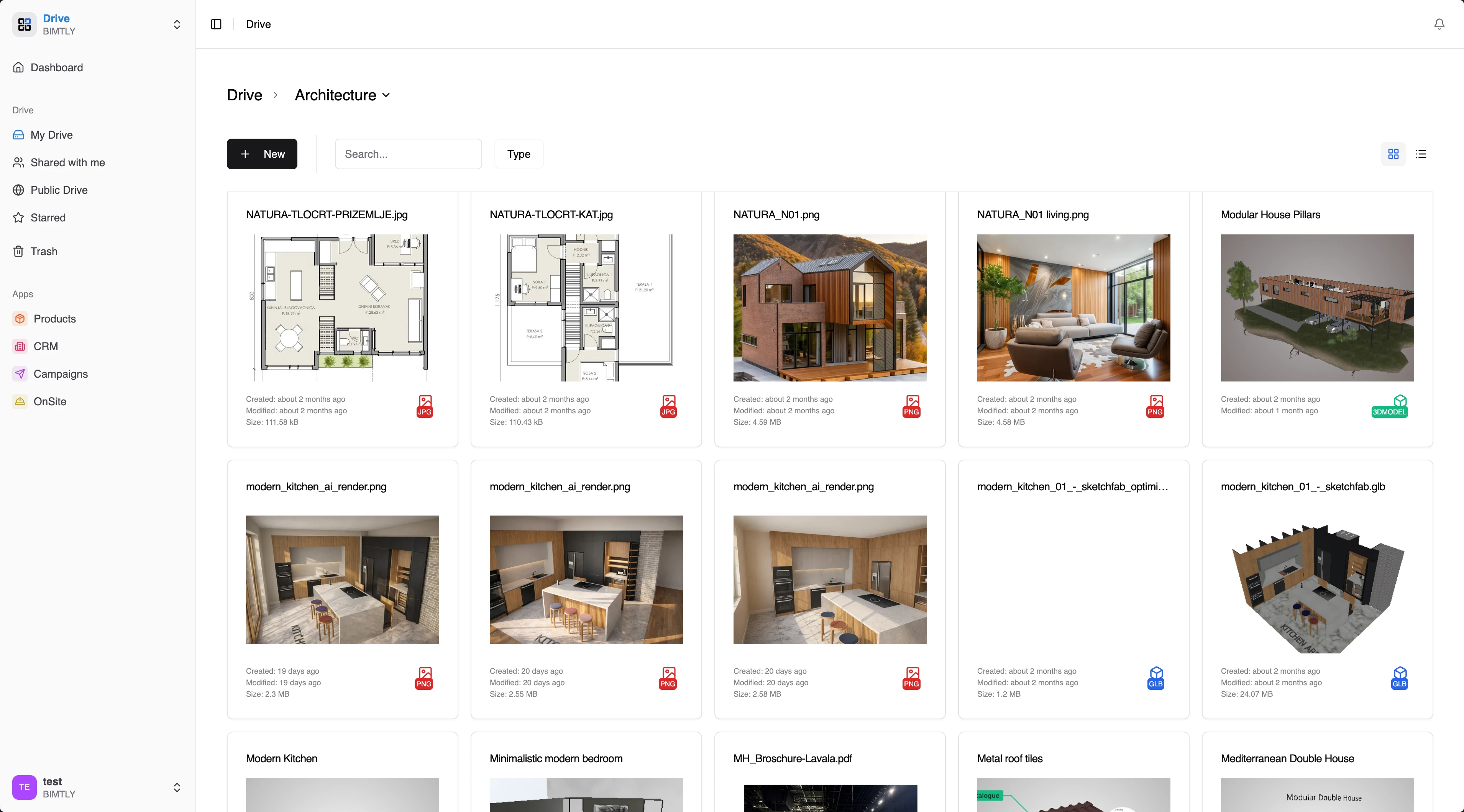 Folders, 3D models, images, documents, web projects, collections — everything lives in Drive. Organize with nested folders, drag and drop to rearrange, and find anything with search.