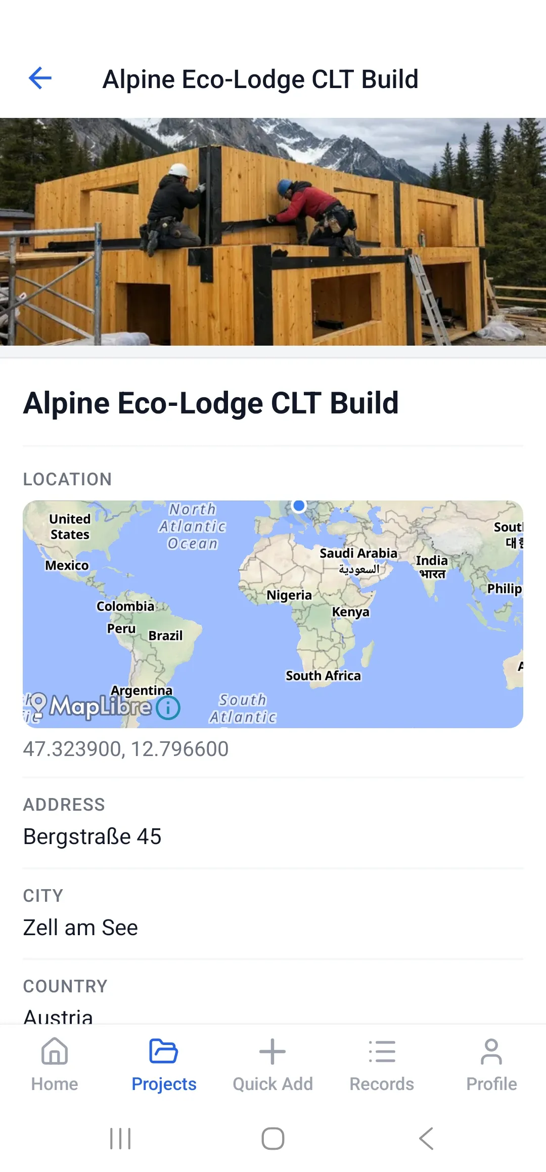 Every project plotted geographically. Color-coded status markers show which sites need attention. Click any marker for project details — location, status, and recent activity.