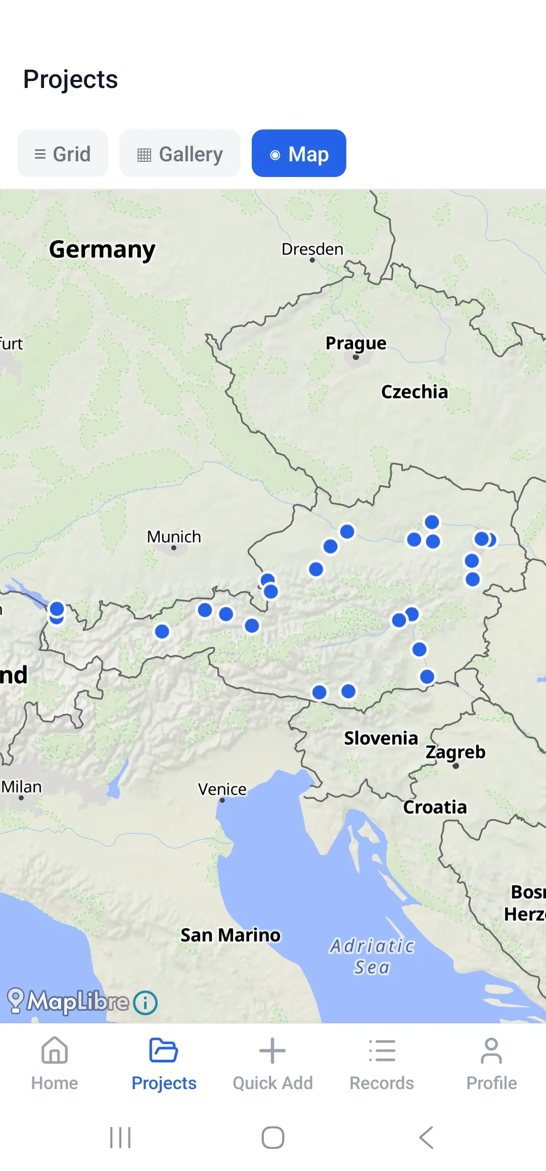 - Switch between Grid, Gallery, and Map views